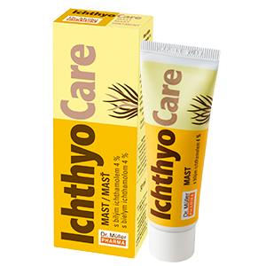 White Ichthammol, the effective agent of the IchtyoCare preparations by Dr. Müller Pharma, is a light form of sulphonated slate oil. While ammonia is used for the neutralization of common dark ichthammol, and the final product contains a not negligible amount of ammonia, white ichthammol is neutralized by sodium ions which aren’t so alien to our bodies and do not contain any free base that can irritate the skin.